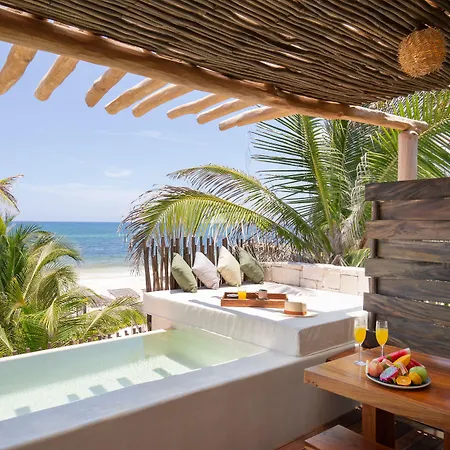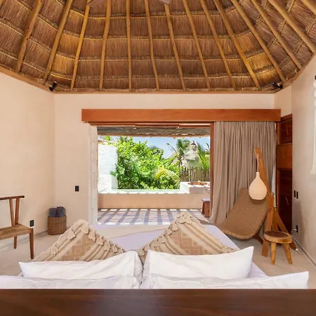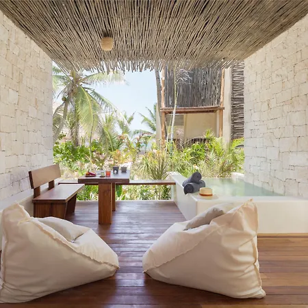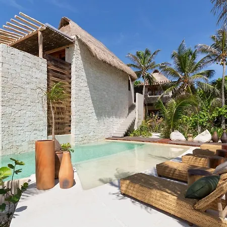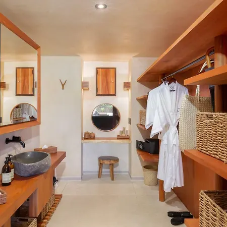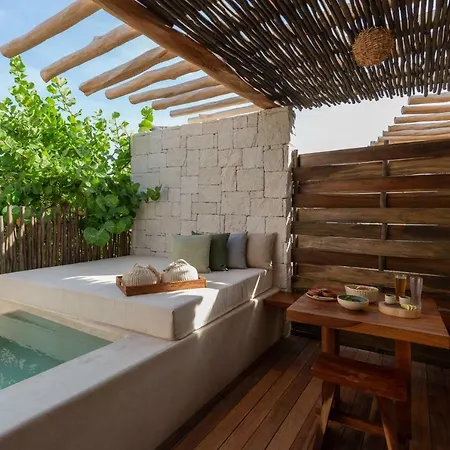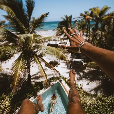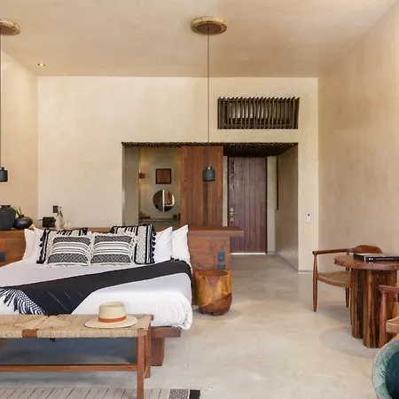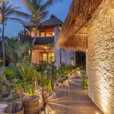 Dit Hotel Ma'Xanab Tulum Pueblo met 5 sterren ligt binnen 6 minuten wandelafstand van de Ziggy's en biedt 16 kamers met spatherapie en spadiensten. Hier kan men genieten van de Mexicaanse keuken op minder dan 1 km van Delek.